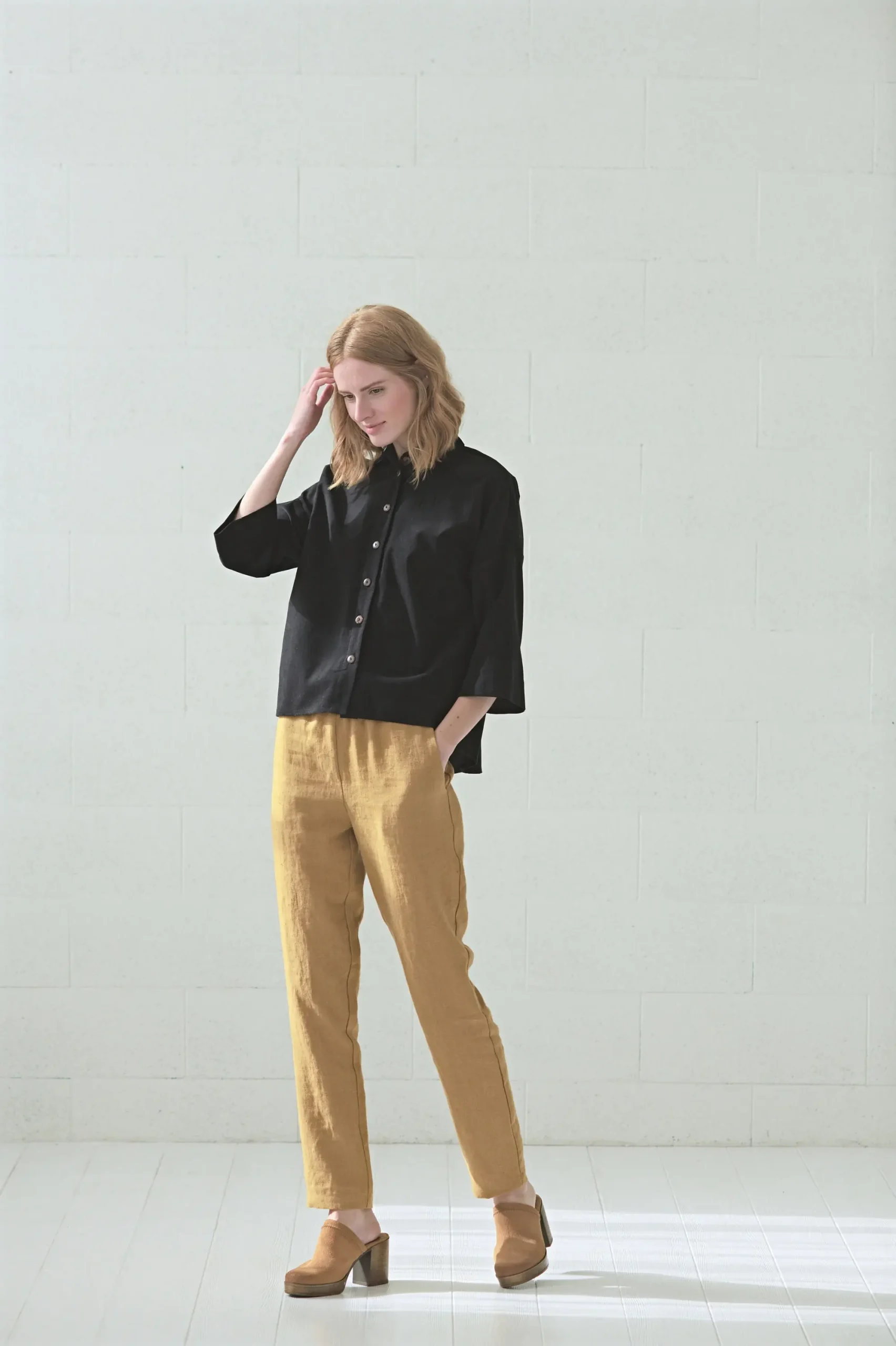 Oversized Black Corduroy Shirt: Women’s Short Button-down Top